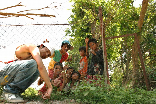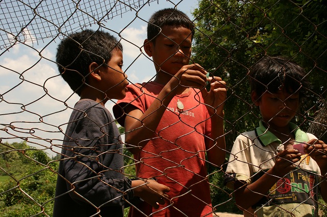 敷地内を歩いていると、網のフェンスの向こうで、子供たちが遊んでいた