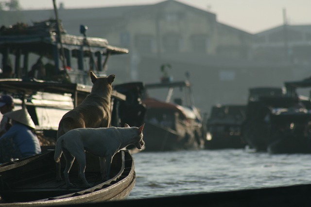 ここの犬はボートなんてへっちゃらみたい