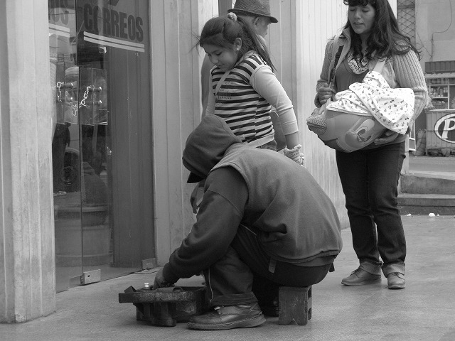 またラパスには、覆面を被った靴磨きをしている人で溢れ返っている