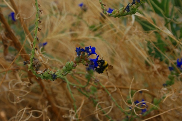 真ん中は、真っ青な花に吸い付く蜂