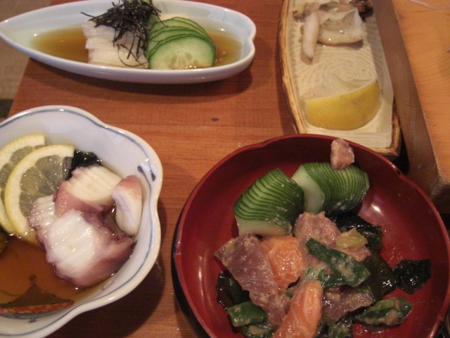 お造りに、豆腐、寿司に、牛たたき、山芋、酢の物、カルピス‥まだいっぱい食べた