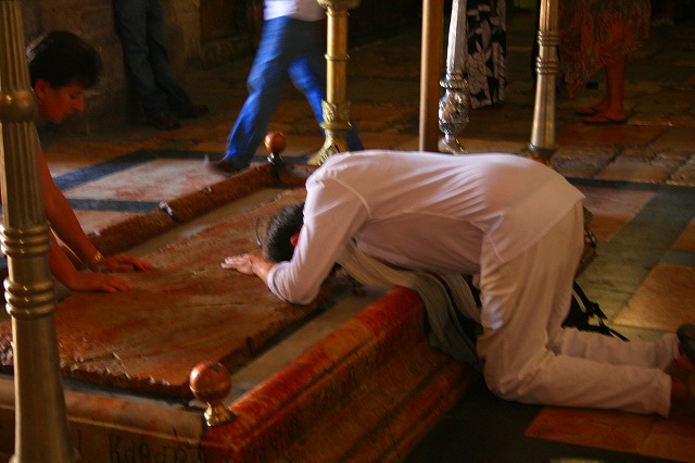そこに、キリスト信者が頭をつき、5分ほど黙祷している姿