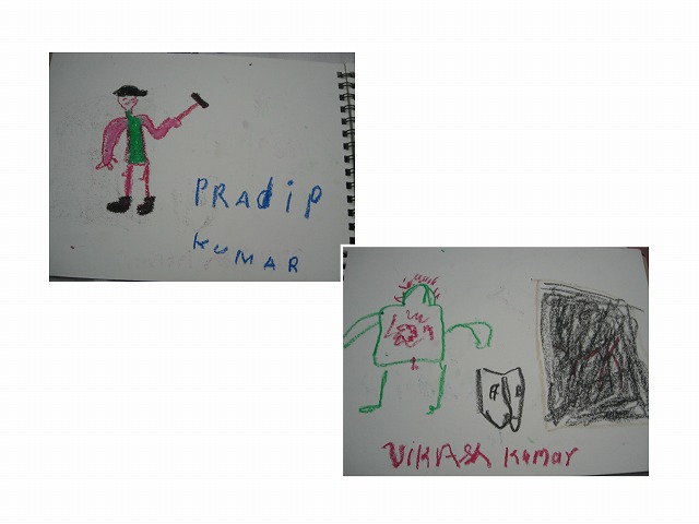 「スケッチブックとクレヨンをお渡しするので、インドで出逢った少年・少女(目がキラキラしている子)の夢を、スケッチブックに好きなように表現してもらい、その夢とその子の写真を撮ってきてほしい」
