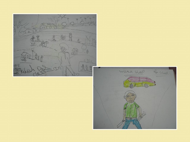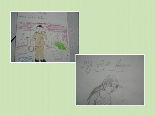 今回、インドでは出逢った子供たち(全員ではないけど)に「将来の夢」をスケッチブックに書いてもらった