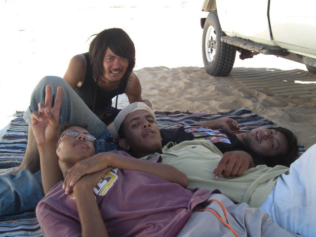 同じ宿(ベニス宿泊)だった日本人、のりくん、ゆかりさんと、エジプト人スタッフ3人