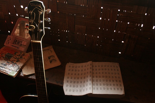 チューングの機械もなくて、ギターの音も不安定だし合わせてあげた